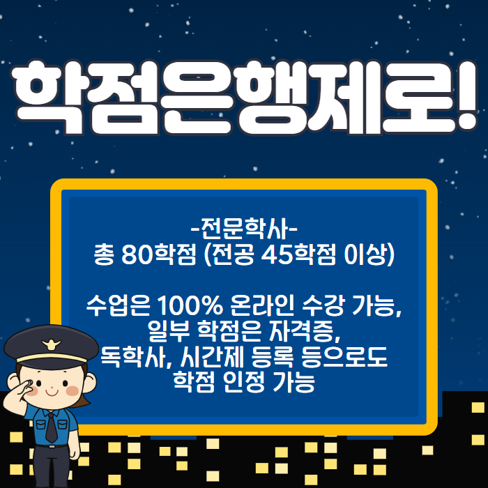 학점은행제 경찰행정학 전공 과정은 효율적이고 현실적인 선택이 되고 있습니다.